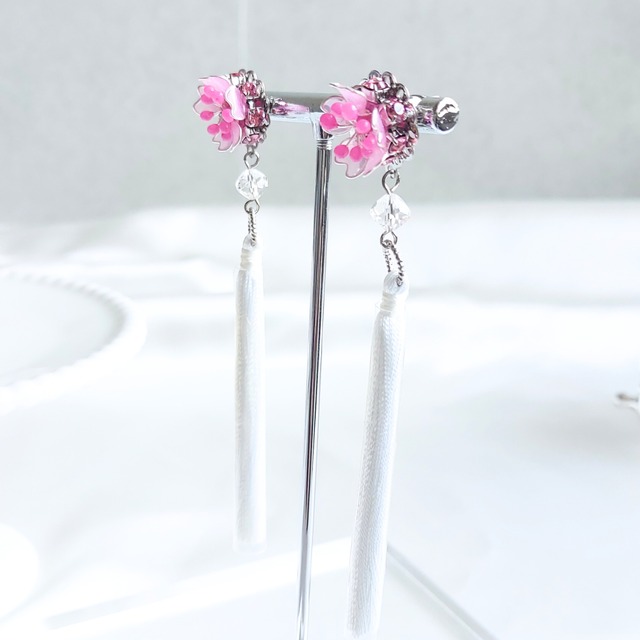 推し活 アクセサリー 概念グッズ イヤリング ピアス 痛くない ビジュー おしゃれ 大ぶり レディース 【桜 ピンク タッセル ホワイト 白 】